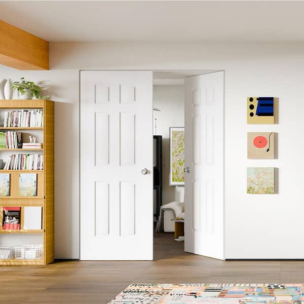 60 in. x 80 in. 6-Panel, Composite, MDF White Primed, Hollow Core Interior Door Slab with Silver Sphere Doorknob