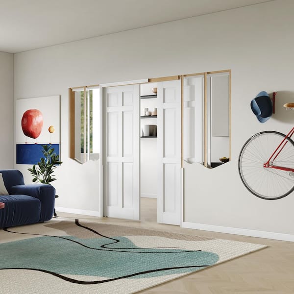 60 in. x 80 in. 6-Panel, Pre-assembled Panel, MDF, White Primed Pocket Door Frame with Hardware