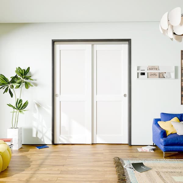 60 in. x 80 in. (Double 30 in.), MDF, White Primed Wood, DIY Painted, 2-Panel Interior Door Slab with Bypass Hardware