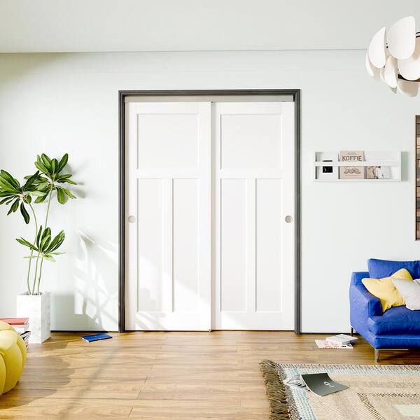 60 in. x 80 in. (Double 30 in.), T-Shaped MDF White Primed Wood Pre-Finished Door Slab with Bypass Hardware