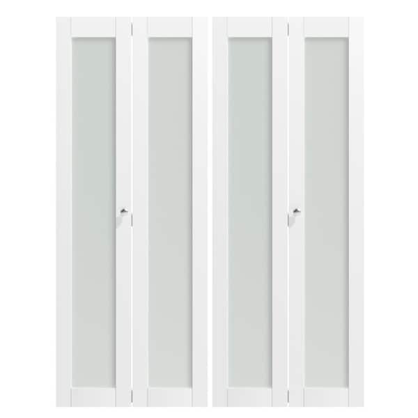 60 in x 80 in Full Lite Frosted Glass Solid Core White PVC Covering MDF Bi-fold Door with Lock and Full Accessories