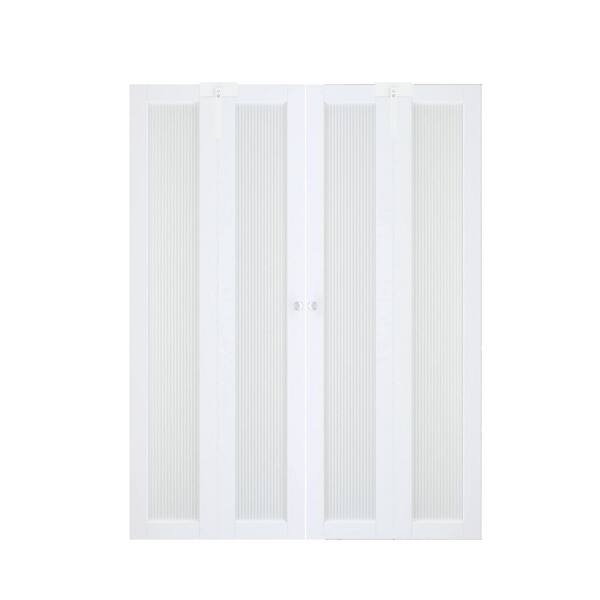 60 in. x 80 in. Full Lite Reed Glass Solid Core White PVC Covering MDF Bi-fold Door with Lock and Full Accessories