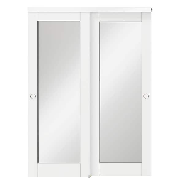 60 in. x 80 in. White, MDF and DIY Painted Double Mirrored Glass Panel Bypass Sliding Door with Aluminium Hardware