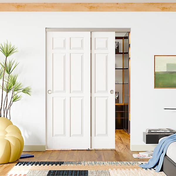 60 in. x 80 in. White, Solid Core, MDF and DIY Painted Double 6-Panel Bypass Sliding Door with Aluminium Hardware
