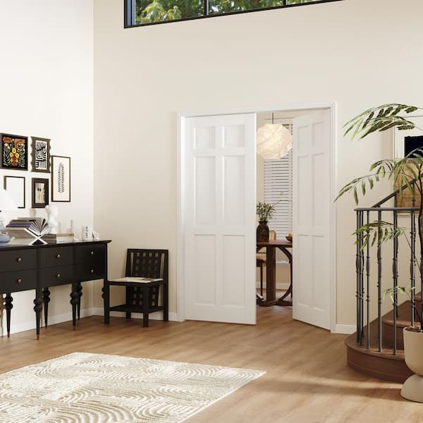 64 in. x 80 in. 6-Panel, Hollow Core, Wood MDF, White Primed, Pre-Finished Door Panel Interior Door Slab Without Hinges