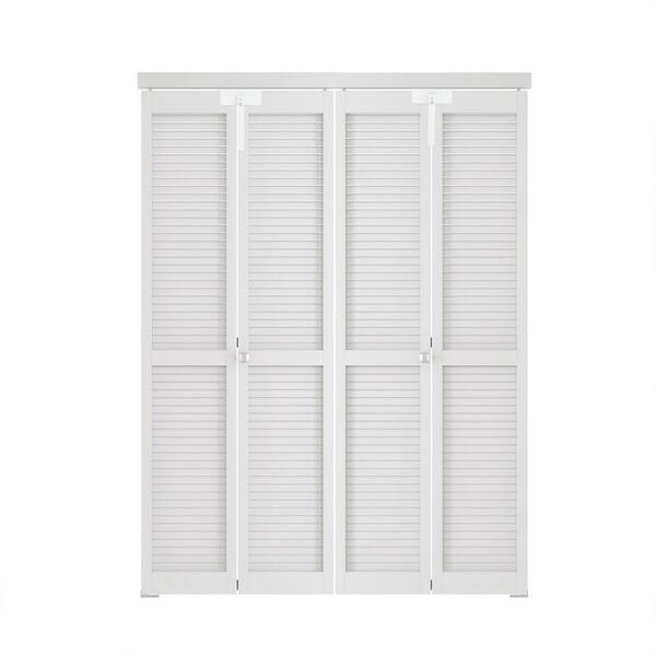 72 in. x 80 in. Full-Panel Louver Solid Core White PVC Covering Wood MDF Bi-fold Door with Locks, Handles