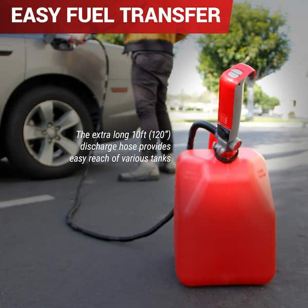 2.4 GPM XL Telescopic Battery Powered Fuel Transfer Pump with 10 ft. Hose for Fuel Cans Up to 5 Gal. in Capacity