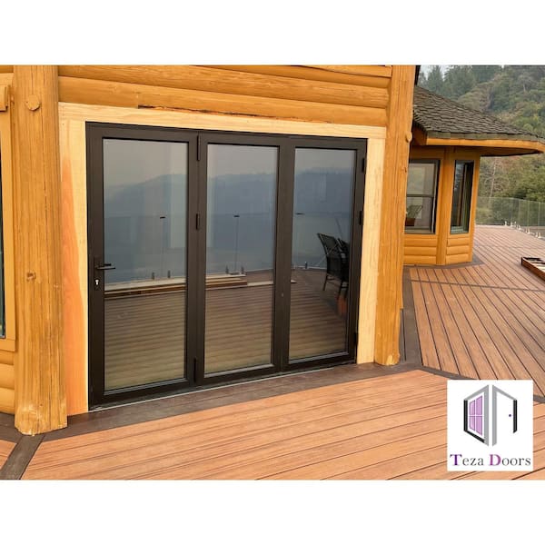 96 in. x 96 in. Black Aluminum Right Swing/Outswing Folding Patio Door