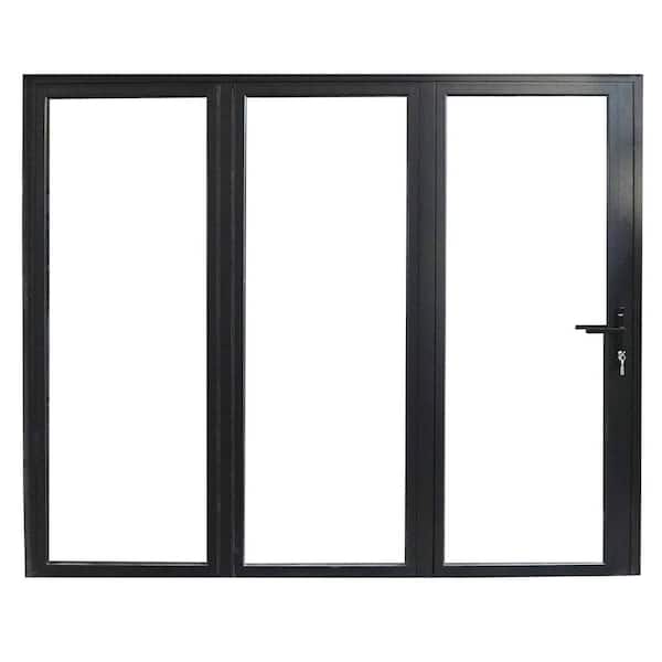 Teza 85 Series 108 in. x 80 in. Matte Black Right to Left Folding Aluminum Bi-Fold Patio Door