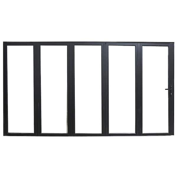 Teza 85 Series 168 in. x 80 in. Matte Black Right to Left Folding Aluminum Bi-Fold Patio Door