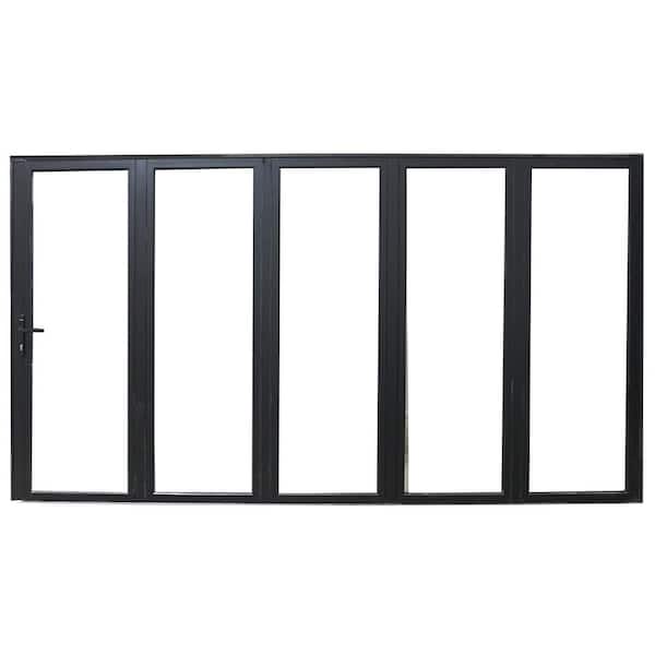 Teza 85 Series 180 in. x 96 in. Matte Black Left to Right Folding Aluminum Bi-Fold Patio Door