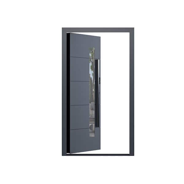 Teza 85 Series 48 in. x 80 in. Left Hand Matte Black Aluminum Prehung Front Door with Hardware