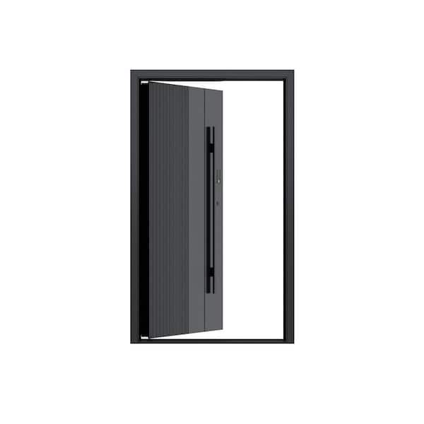 Teza 85 Series 48 in. x 80 in. Left Hand Matte Black Aluminum Prehung Front Door with Hardware