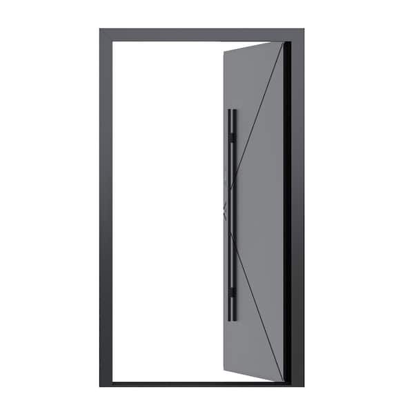 Teza 85 Series 48 in. x 80 in. Right Hand Matte Black Aluminum Prehung Front Door with Hardware