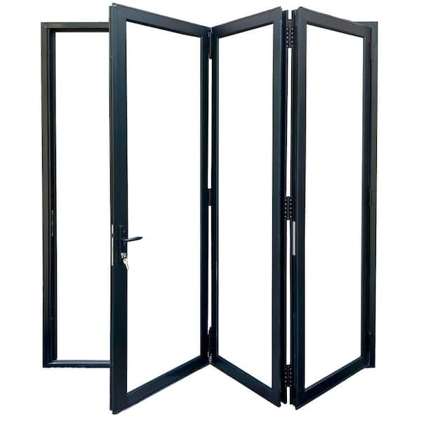 Teza 90 Series 120 in. x 80 in. Matte Black Left to Right Folding Aluminum Bi-Fold Patio Door