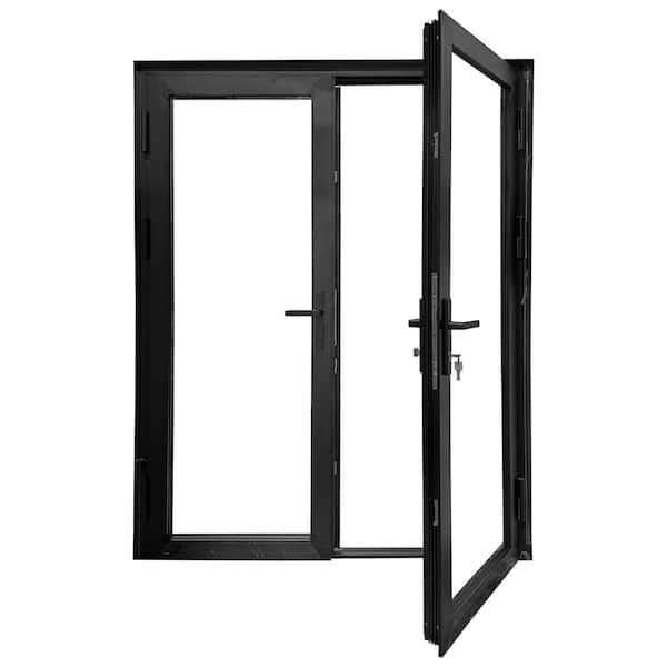 Teza French Door 61.5 in. x 80 in. Matte Black Aluminum French Door Full Lite Right-Hand Outswing