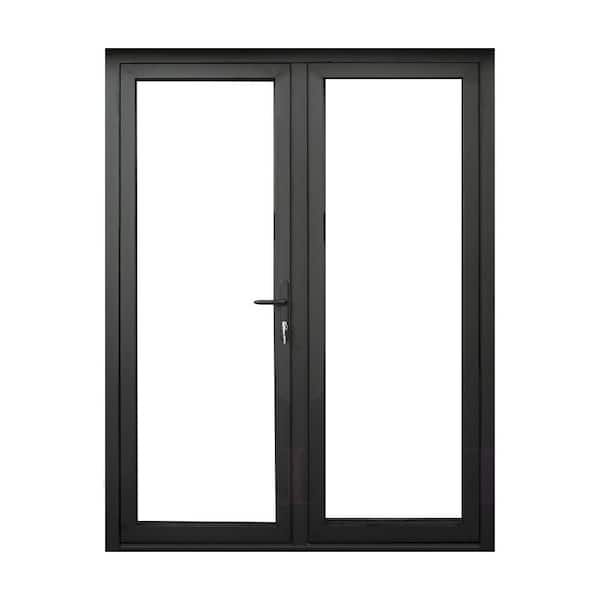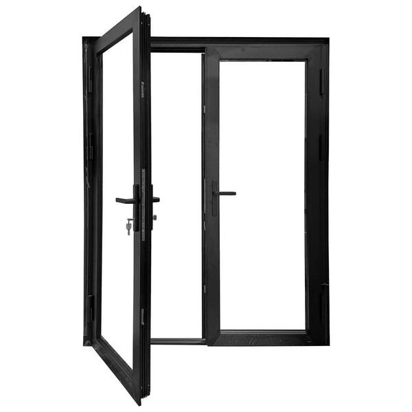 Teza French Doors 61.5 in. x 80 in. Matte Black Aluminum French Door 3 Lite Left Hand Inswing