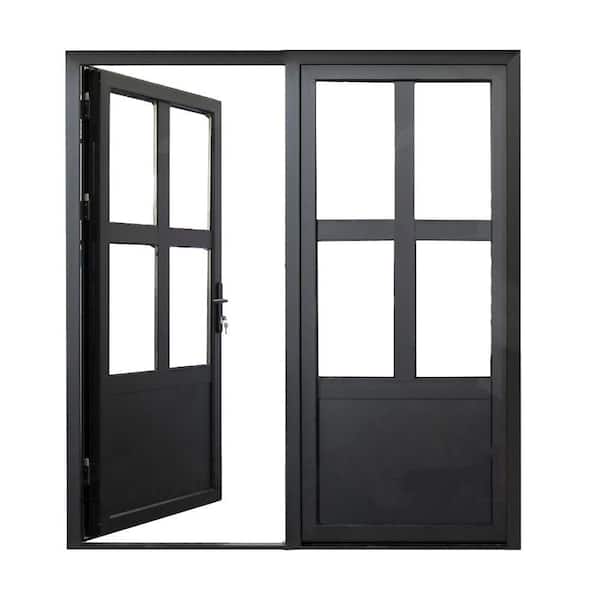 Teza French Doors 61.5 in. x 80 in. Matte Black Aluminum French Door 4 Lite Right Hand Inswing