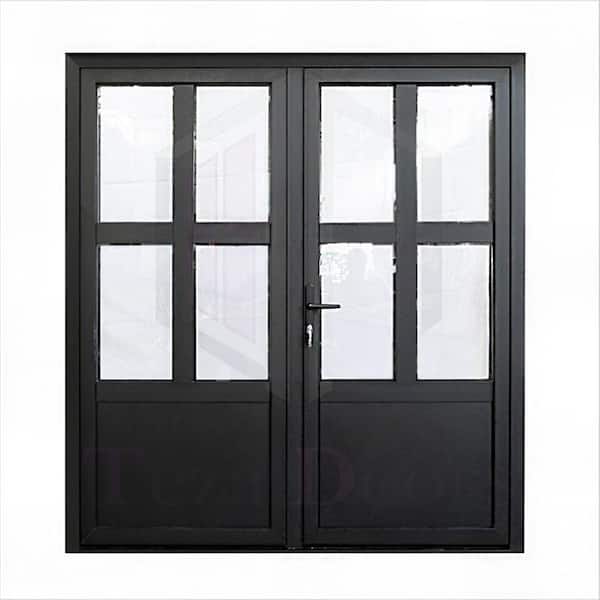 Teza French Doors 73.5 in. x 80 in. Matte Black Aluminum French Door 4 Lite Right Hand Outswing