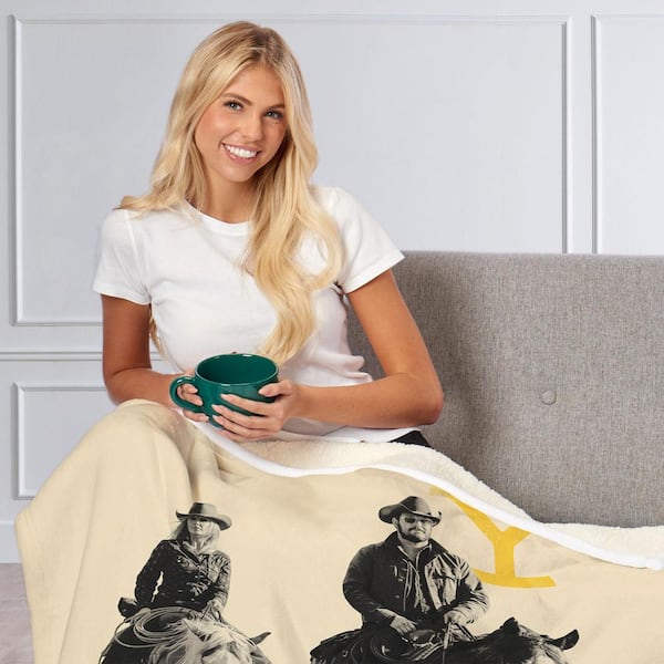 Paramount Yellowstone Horseback Multicolor Silk Touch Sherpa Polyester Throw Blanket
