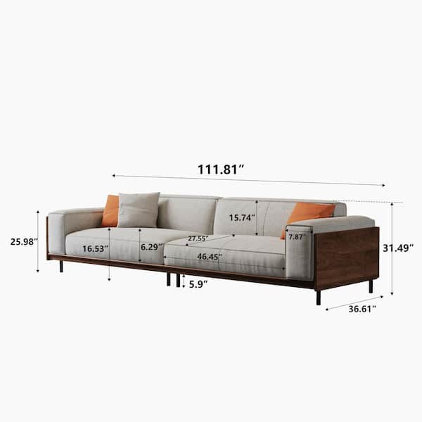 111.81 in Square Arm Linen Square Sofa 36.61 in. D Gray/Brown