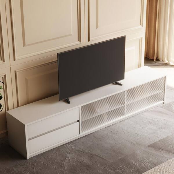 70.86 in. Multimedia Console, Suitable for TVs up to 70 in. with 2-Drawers and 4-Shelves Beige