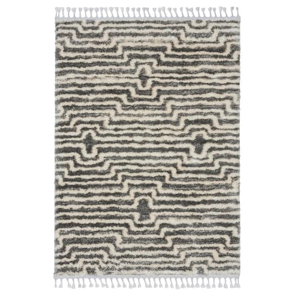 Marcella Alan Gray/Ivory 5 ft. x 7 ft. Shag Area Rug