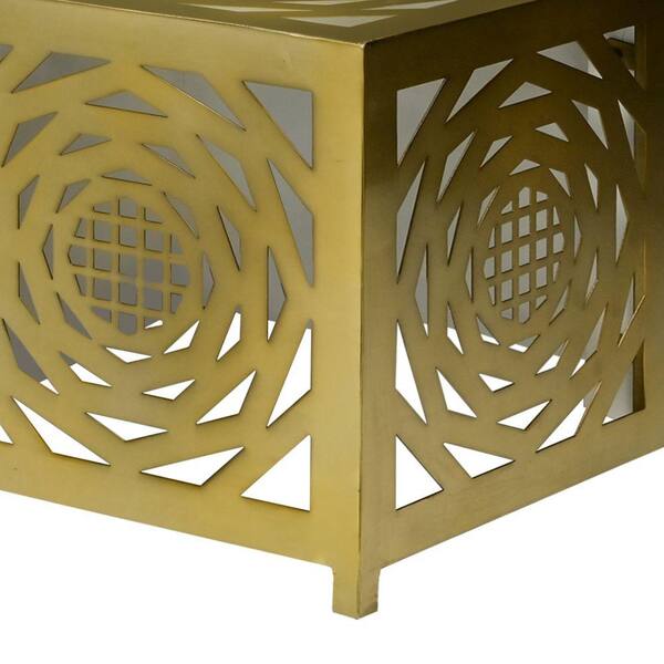 24 in. White and Brass Rectangle Wood Coffee Table with Geometric Cut Out Design