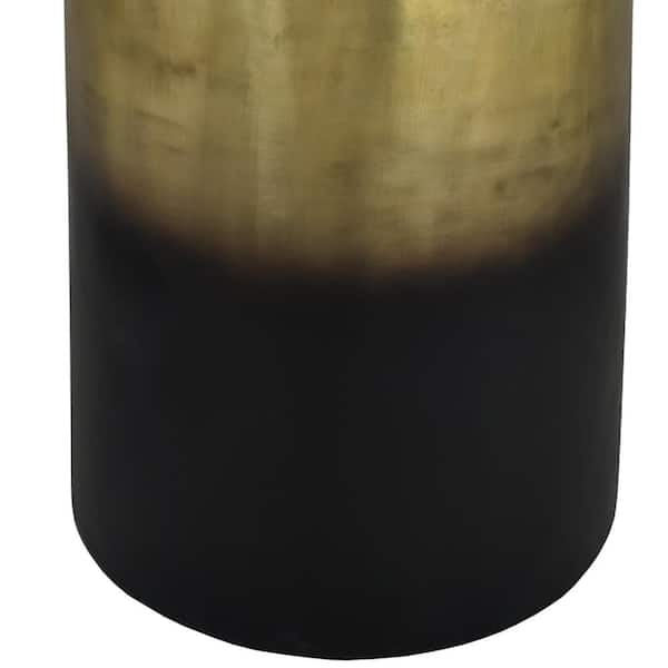Dyan 16.5 in. Black and Gold Antique Brass Ombre Round Drum Shape Aluminum Metal Side Table