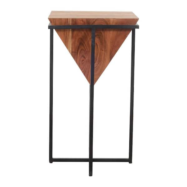 Ida 15 in. Brown and Black Square Wooden Side Table with Cross Metal Base