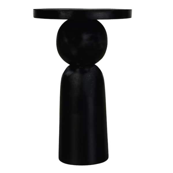 Tia 12 in. Matte Black Round Mango Wood Side End Table with Turned Pedestal Base
