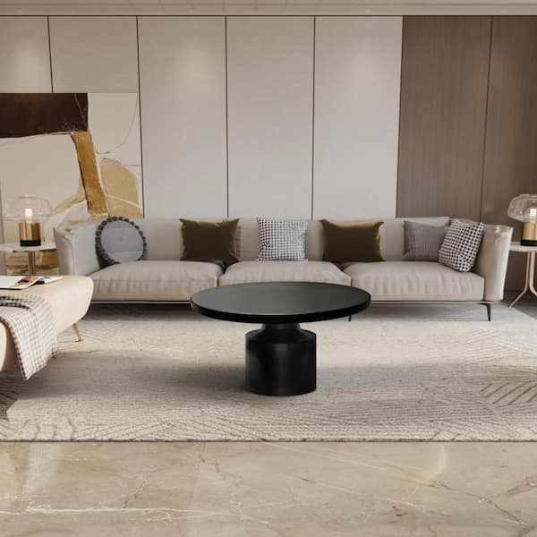 Zoe 30.5 in. Black Round Metal Coffee Table with Pedestal Base
