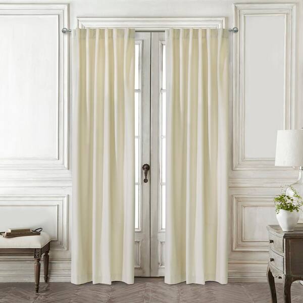 Seren Natural Polyester Velvet 50 in. W x 95 in. L Dual Header Indoor Room Darkening Curtain (Single Panel)