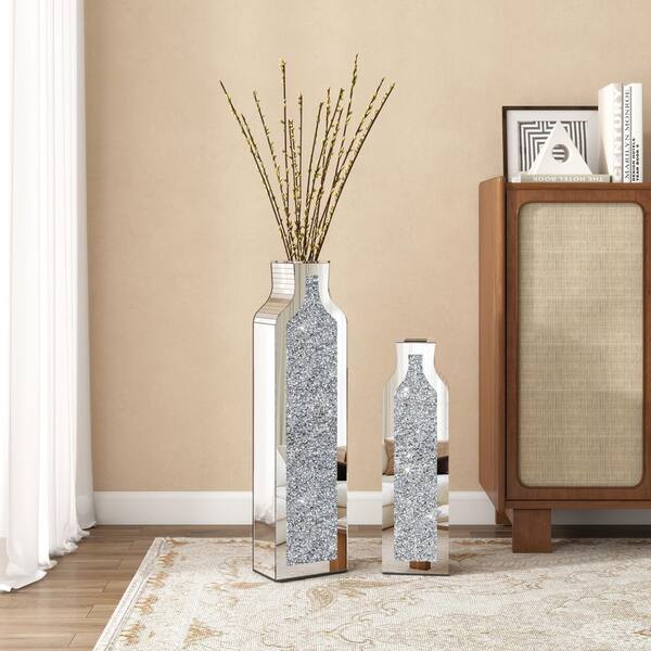 24.09 in. Silver Mirrored Glass Amphora Decorative Vase (Set of 2)