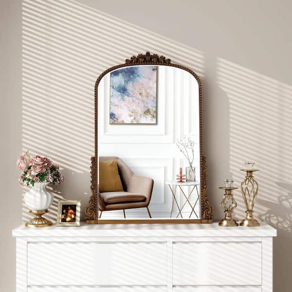 Antiqued Gold 28 in. W x 39 in. H Vintage Arched Wall Mirror