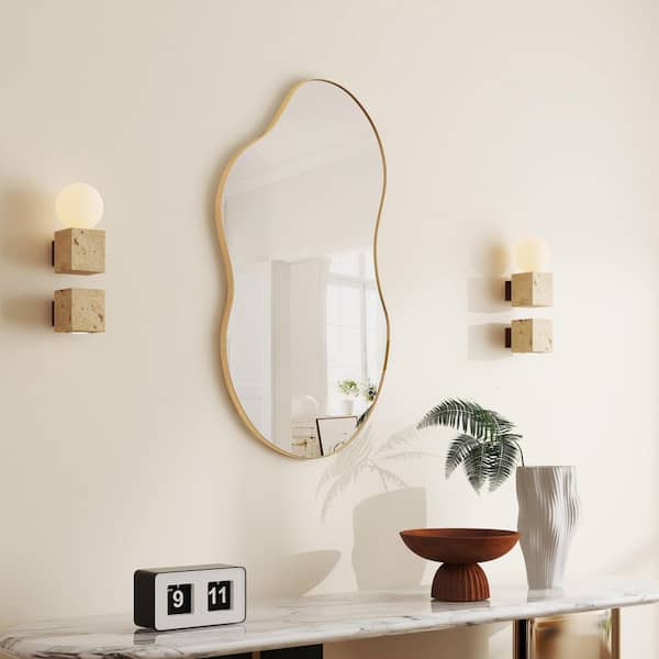 Gold 32.28 in. W x 19.09 in. H Irregular Metal Decorative Mirror