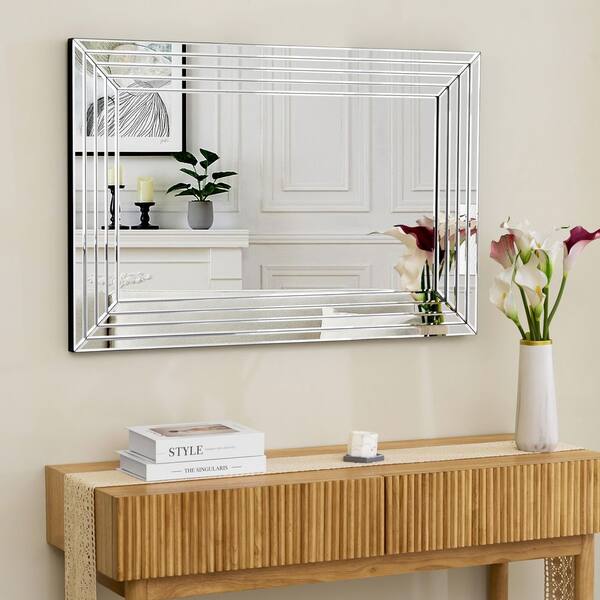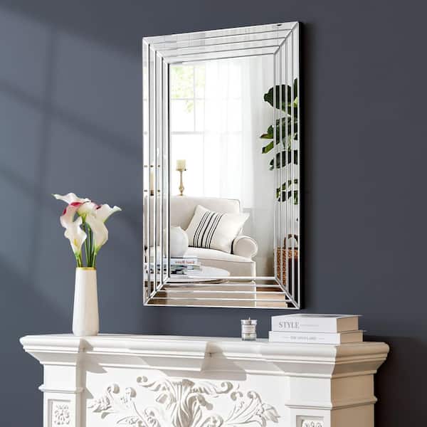 Silver 23.6 in. W x 35.4 in. H Decorative Rectangle Glass Framed Mirror