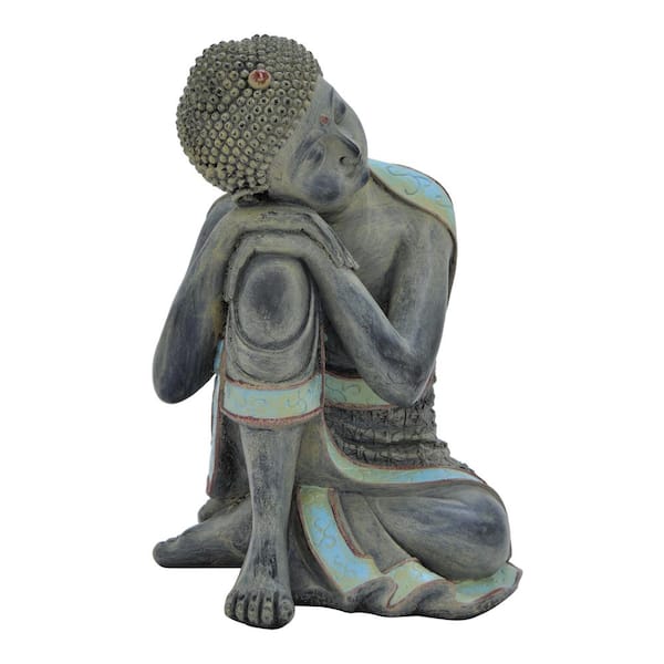9.75 in. x 9 in. Buddha Figurine in Gray