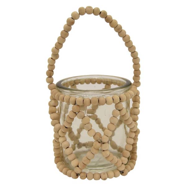 9 in. x 5 in. Glass and Wood Votive in Brown