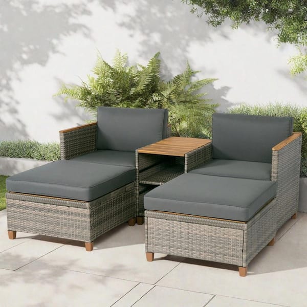 Arbor 5 Piece Wicker Patio Conversation Deep Seating Set with Dark Gray Cushions