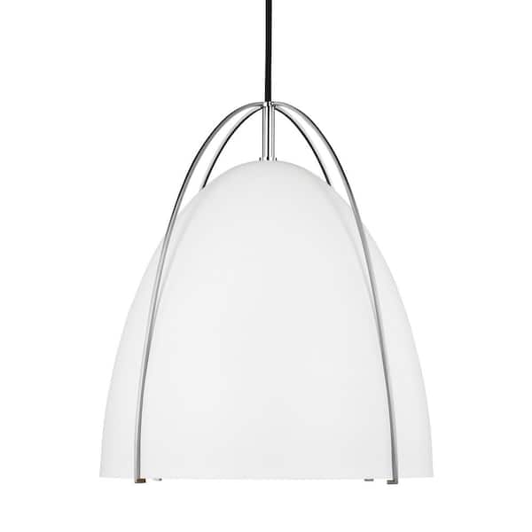 Aiofe 1-Light Chrome Modern Industrial Indoor Dimmable Hanging Ceiling Pendant Light with White Metal Shade