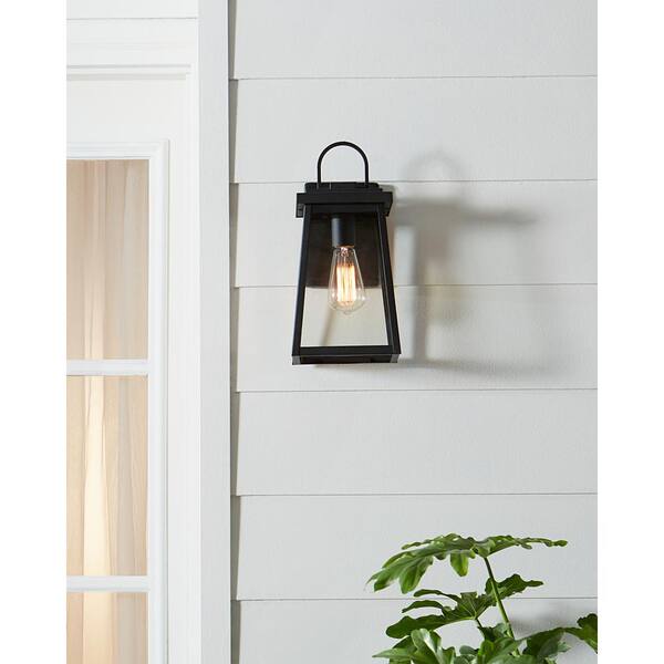 Bihl Medium 1-Light Black Transitional Exterior Outdoor Wall Sconce with Clear and White Glass Panels Included