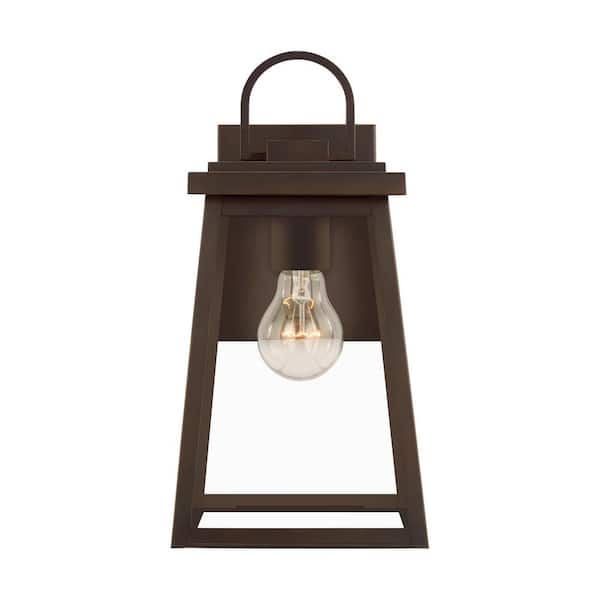Bihl Medium 1-Light Bronze Transitional Exterior Outdoor Wall Sconce with Clear and White Glass Panels Included