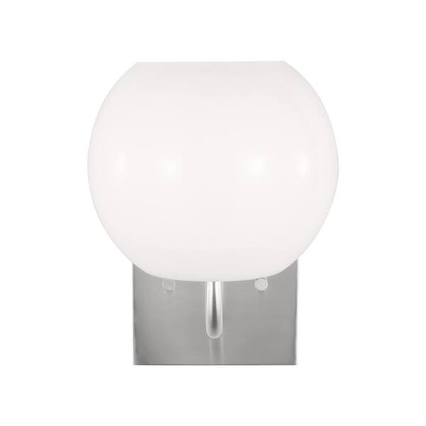 Doraville Small 6.825 in. 1-Light Brushed Steel Bathroom Vanity Light with an Opal Glass Shade