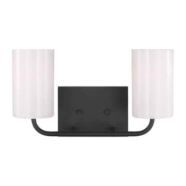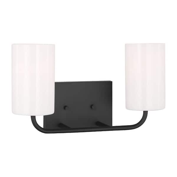 Grant Park Medium 15 in. 2-Light Midnight Black Vanity Light with Clear White Glass Shades
