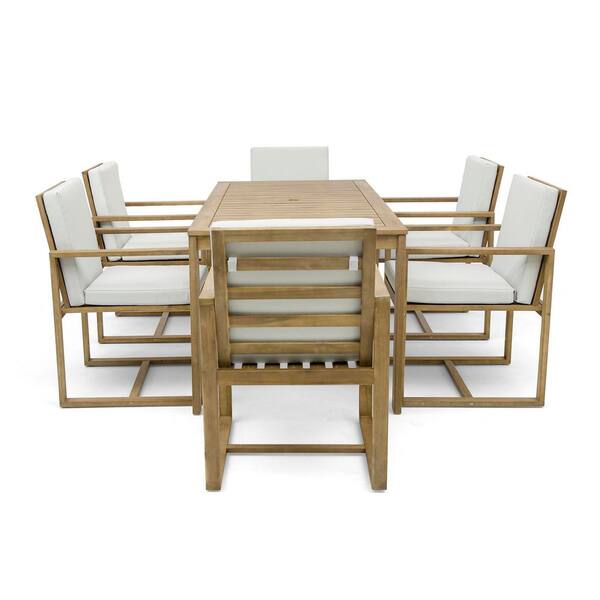 1 Piece of Outdoor Dining Table and chairs, a Wood Outdoor Dining Set, comes with removable Cushions.