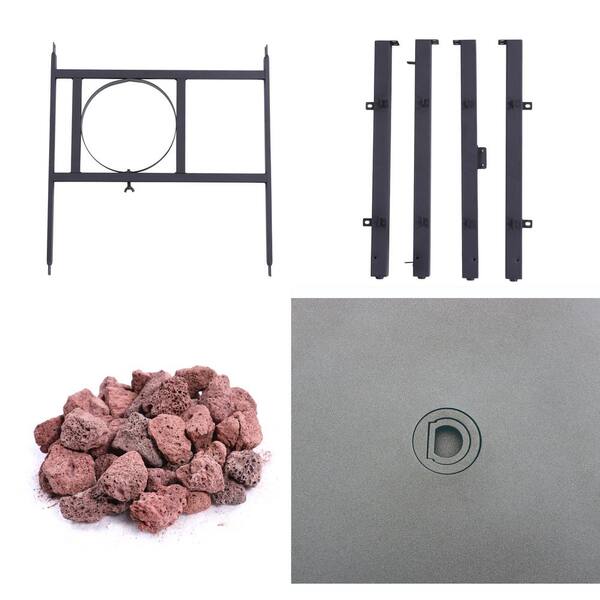 30 in. W x 25 in. H Outdoor Steel Rectangular Liquid Propane Black Fire Pit Table with Lava Rocks and Protective Cover