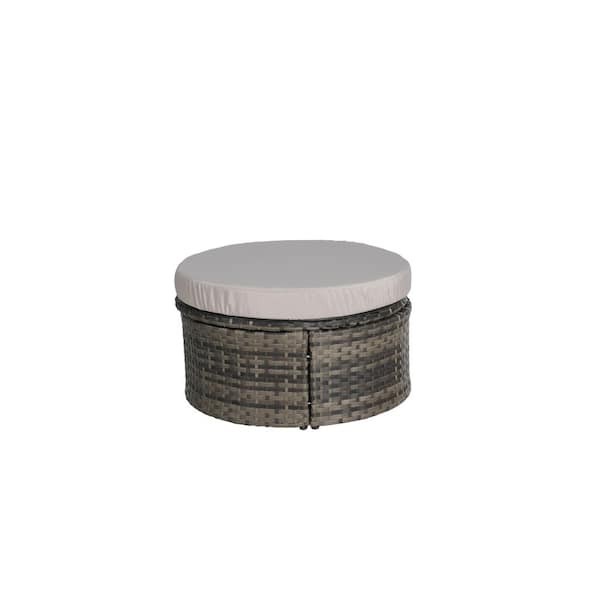 5-Piece Wicker Metal Outdoor Round Day Bed with Light Gray Cushions