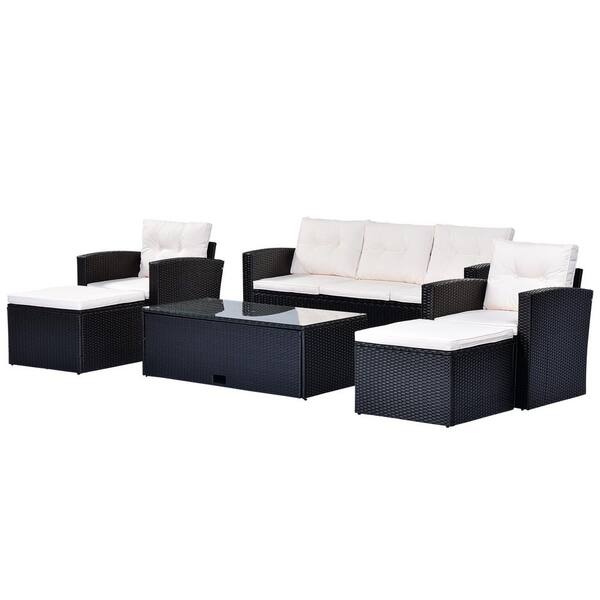 6-Piece Black Wicker Outdoor Sectional Set Conversation Set with Beige Removable Cushion and Coffee Table