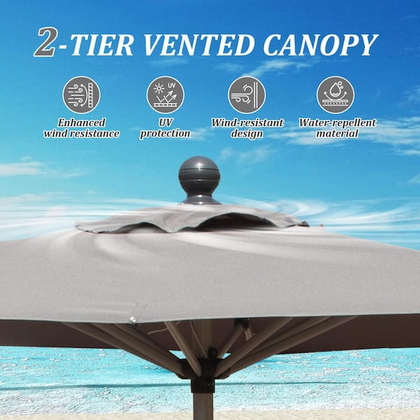 6 ft. Aluminium Market Crank Lift and Tilt Patio Umbrella in Grey